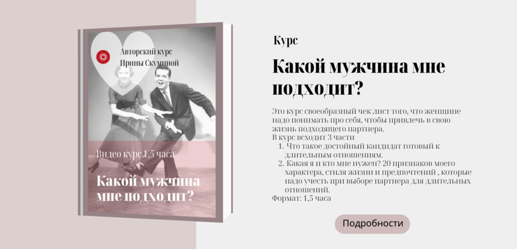 Этот курс про то как не ошибиться при выборе партнера. Как учесть все свои особенности, черты, пожелания.